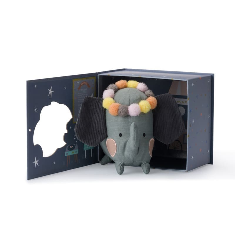 Przytulanka Pani Słoń w eleganckim pudełku prezentowym. Pudełko jest domkiem Pani Słoń.
