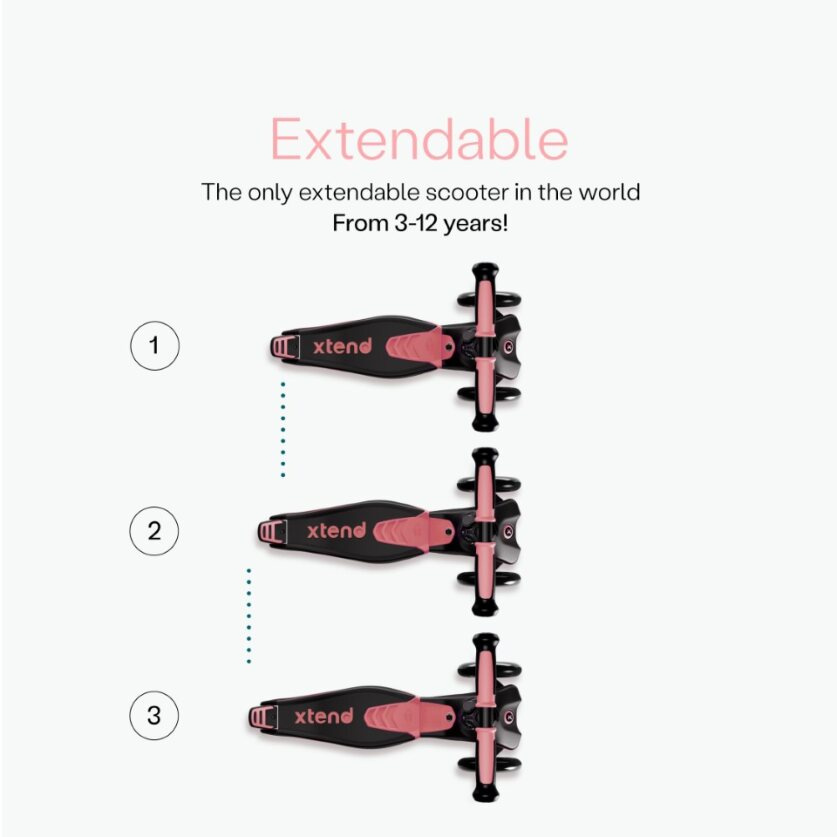 3-stopniowa regulacja deck’u/podstawy hulajnogi Xtend oraz jej trwała konstrukcja sprawiają, że jedna hulajnoga może towarzyszyć dzieciom przez całe dzieciństwo.