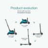 - Nazwy kolejnych wariantów; Jeździk (12+ miesięcy), Ride-on (od 2 roku życia), Scooter (od 3 roku), Hulajnoga Xtend (od 9 lat)